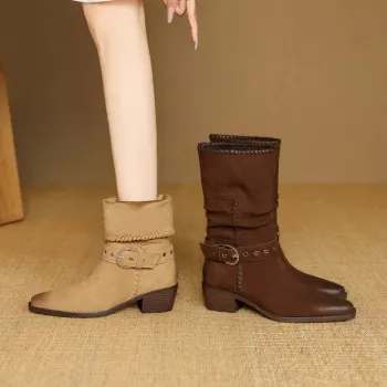 Women’s Mid-Calf Suede Boots – Handmade Square Toe Mid Heel